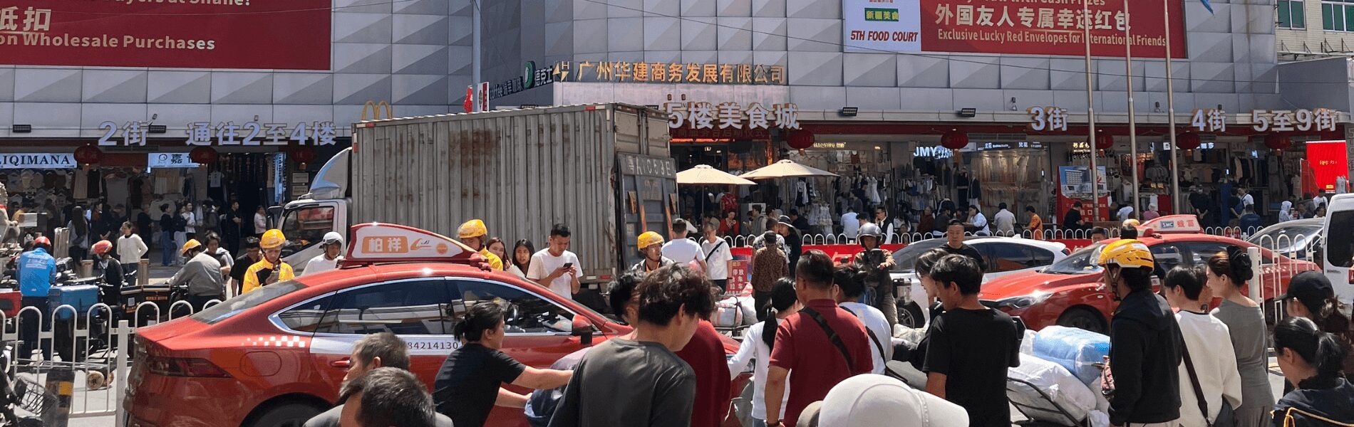 広州には、毎週新しい服が生まれる市場があります。レディースアパレル、バッグ、靴、アクセサリー。1SKU5枚から仕入れられる柔軟さと、世界中のバイヤーが集まるスケール。弊社の現地スタッフは、この市場を15年歩き続けています。